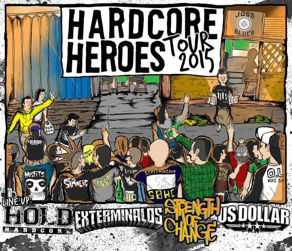 HARDCORE HEROES TOUR IS BACK!!! Tahun 2015 amunisi hardcore Surabaya siap menghantui kembali beberapa kota di Jawa Timur dan Jawa Tengah. kali ini ada Exterminalos dan US Dollar yang baru merilis debut albumnya 2014 kemarin, kemudian ada Strength of Change yang awal tahun 2015 kemarin juga baru merilis mini albumnya, satu lagi ada Hold yang kembali dengan line up terbaru plus semakin gresss dengan materi terbarunya juga. agenda tour ini adalah kedua kalinya setelah tahun 2014 kemarin kawan-kawan dari Surabaya Hardcore juga mempunyai visi dan misi untuk promo albumnya. so, pastikan jangan sampai terlewatkan jikala kota-kota kalian akan disinggahi pasukan penguras keringat ini brow.