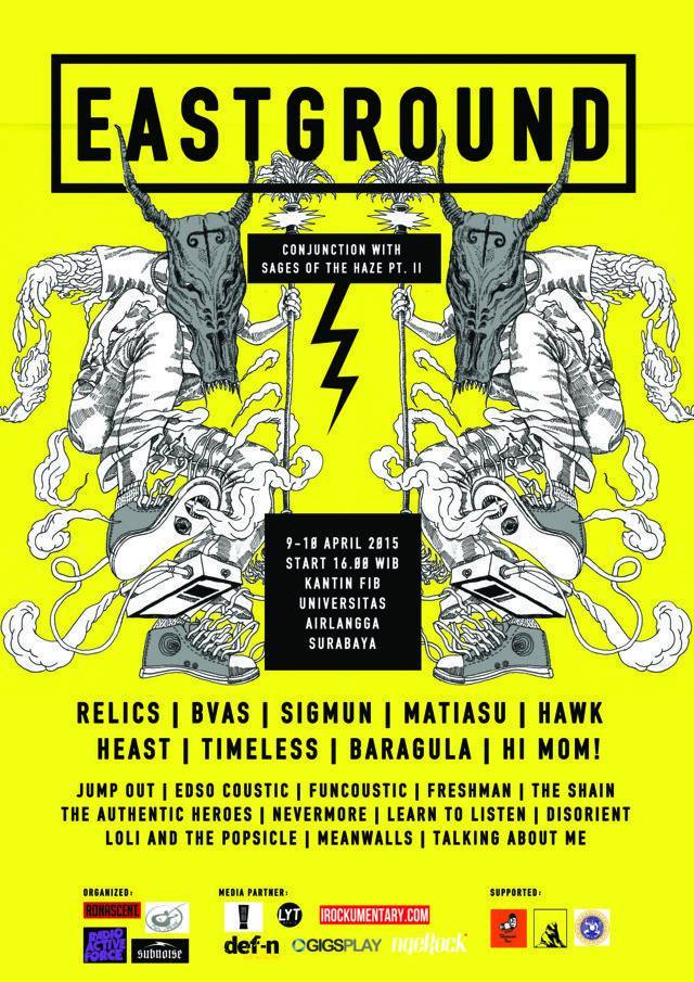 Setelah kota Surabaya ini di serbu oleh agenda tour band-band bergenre ngebut ala hardcore, punk, grindcore, thrash ataupun selonya ala post rock, folk, indie pop/rock maka kali ini tiga band yang beraroma stoner rock, doom, psychedelic siap membuat mengudara maksimal hahaaa..asoiiii ini brow!!!. mereka adalah Sigmun, Matiasu dan Heast yang melanjutkan ibadah tournya “Sages of The Haze Tour Part II” di beberapa kota Jawa-Bali. sebelumnya tour part I mereka sudah menyelesaikan di negara sebrang Malaysia dan Singapore. gigs yang diadakan oleh kawan-kawan BSO FIB Unair, Takkan Mati Recs yang dibantu oleh Ronascent, Radioactive-Force dan Subnoise ini diadakan selama dua hari pada 09-10 april bertempat di Kantin FIB Kampus B Unair. hari pertama yang digeber oleh band-band dari kawan-kawan BSO FIB sendiri Disorient, Edso Coustic, Jump Out, Talking About Me, dll. kemudian lanjut di hari kedua siap dibuai dengan ketiga band yang sedang tour tersebut plus beberapa band jagoan Surabaya sendiri ada Hi Mom!, Hawk, Bvas, Timeless, Baragula, Relics. sila hadir brow karena gigs ini gratis buat kalian, sampe jumpa yes :D.