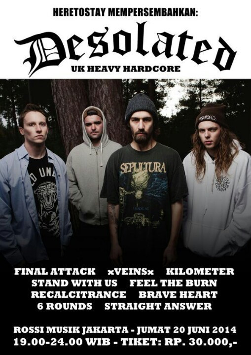 setelah tahun lalu BRUTALITY WILL PREVAIL promo tour di Indonesia, kali ini masih dari UK yakni DESOLATED jagoan hardcore/down tempo akan meliar di Rossi Musik Jakarta, Indonesia. opening band-band hardcore lokal yang berbahaya juga pastinya. selamat berpesta di moshpit area..fakyeh !.